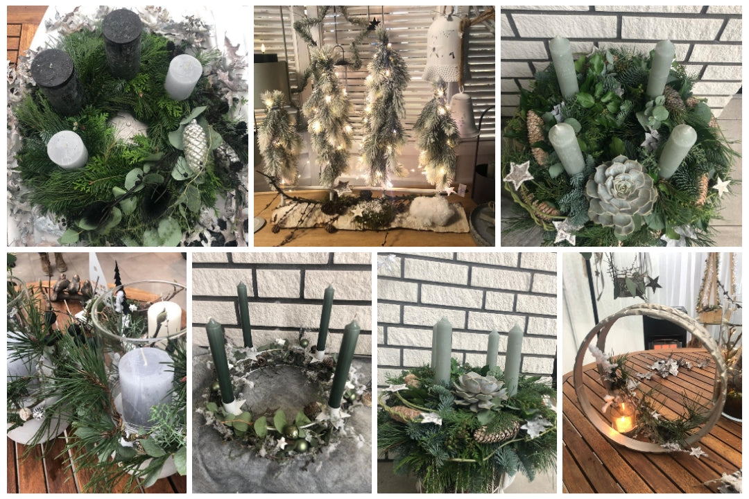 Bei weihnachtlichen Klängen und winterlichen Getränken möchte ich euch liebevoll gestaltete Adventsfloristik, handgemachte Adventskränze und stilvolle Dekorationsartikel rund um Weihnachten präsentieren.