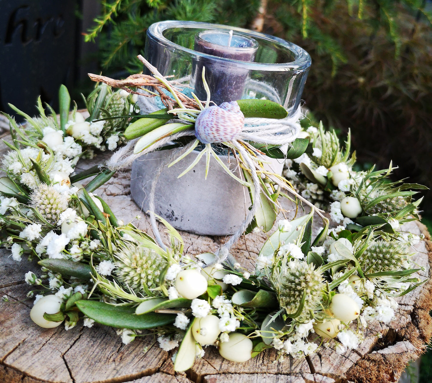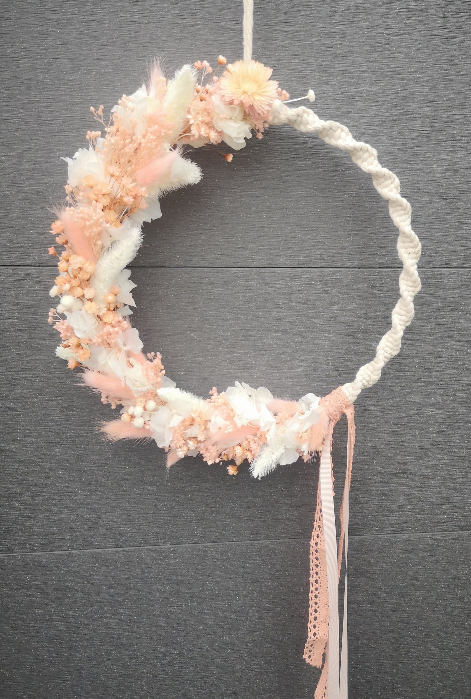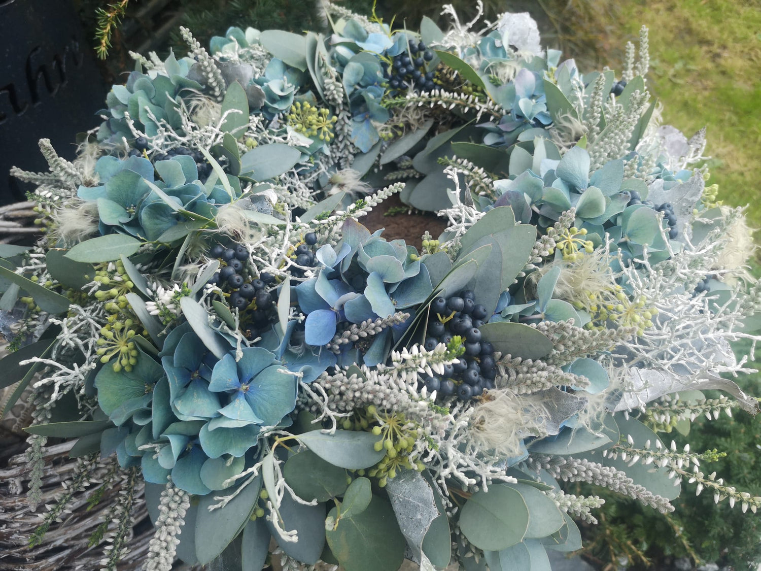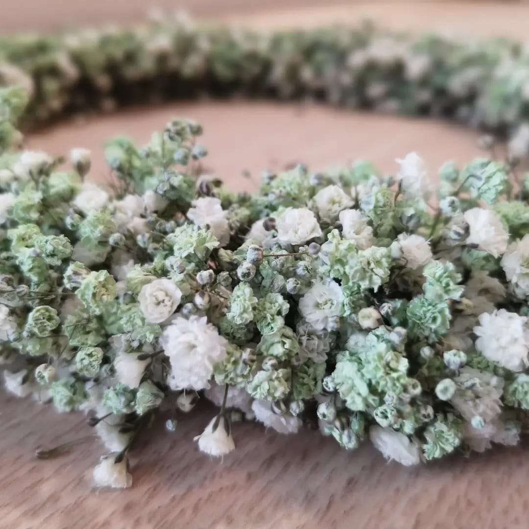 Handgefertigte Kränze hergestellt aus Trockenblumen, Zweigen, Bänder, frischen Blumen, etc.